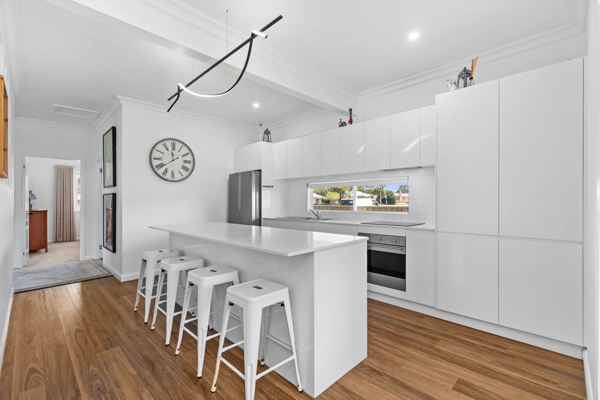 At the heart of the home sits the stunning renovated kitchen, complete with brand-new appliances, sleek cabinetry, generous prep space, and views across the backyard and entertaining area. Flowing open-plan living and dining zones provide a warm and inviting space for family life, while large windows flood the home with natural light throughout the day.