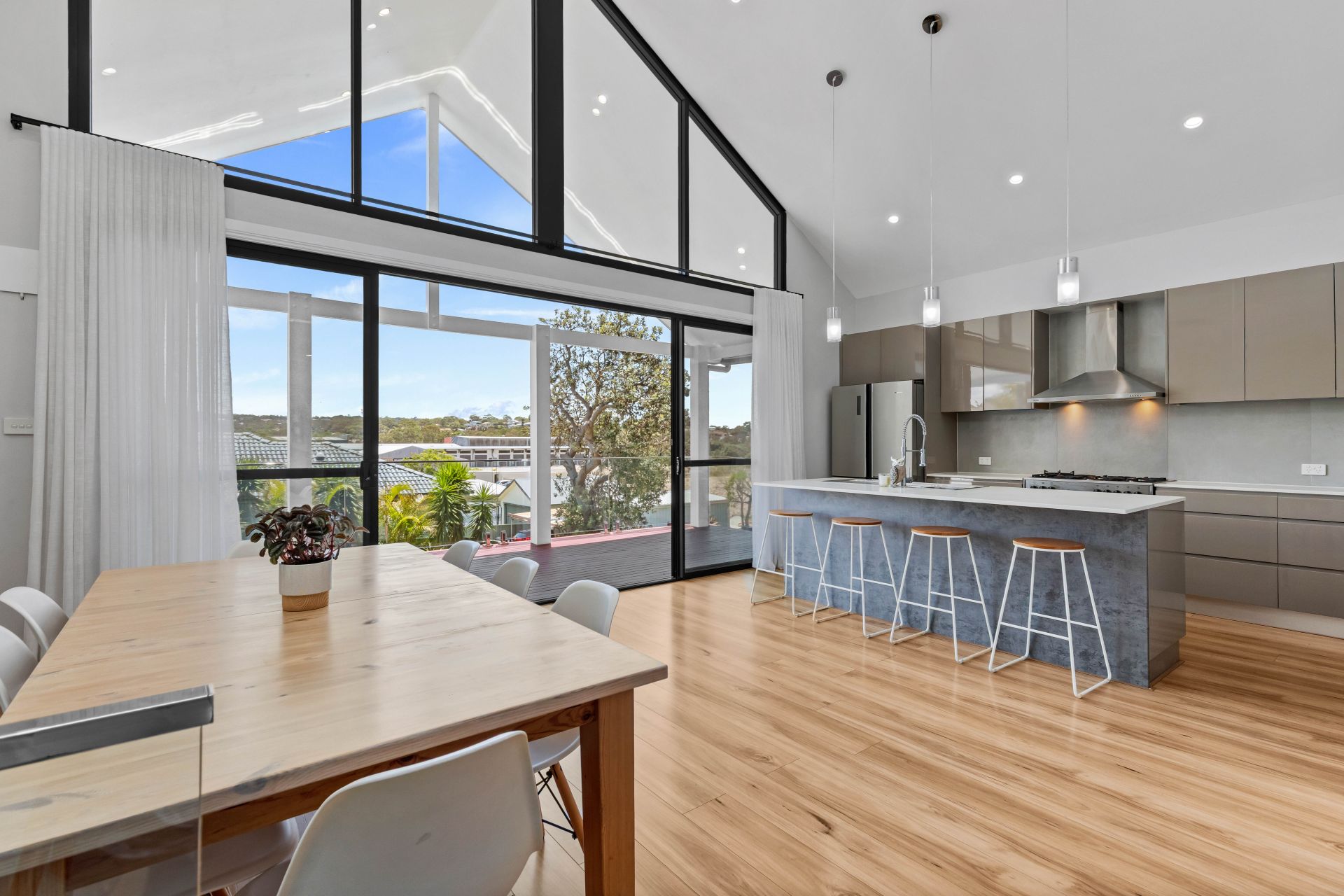 Whether you're hosting a formal dinner in the light-filled dining room or a casual BBQ on the deck overlooking the pool, the hardest decision you'll have to make is whether to serve dinner indoors or out.